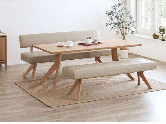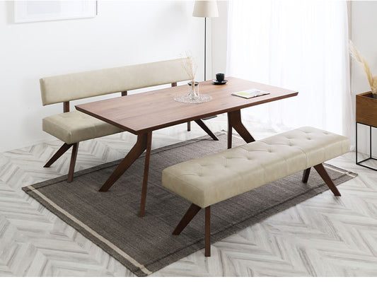 ダイニングチェア 幅150cm 背もたれ付き 座面高42cm 木脚 ファブリック 木製 北欧 おしゃれ ミディアムブラウン ライトブラウン 食卓椅子 リビング ダイニング 椅子 チェア(代引不可)