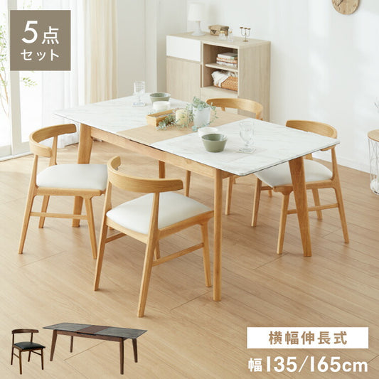 ダイニングセット 伸縮 幅135~幅165 4人掛け 5点セット 大理石調 モダン 伸縮テーブル 伸長式 ダイニング 耐水 耐熱 白 傷がつきにくい ラグジュアリー(代引不可)