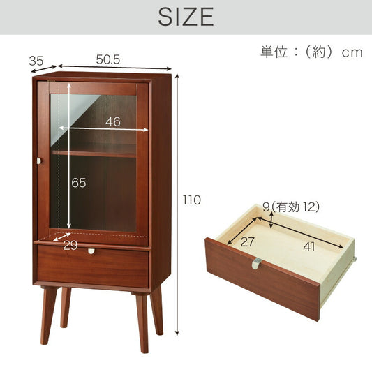 ガラスキャビネット 幅50.5cm 北欧 ヴィンテージ 天然木 マホガニー 完成品 キャビネット マルチボード リビングボード 収納家具 おしゃれ モダン ブラウン 木製 ガラス扉 高級感 ショーケース(代引不可)