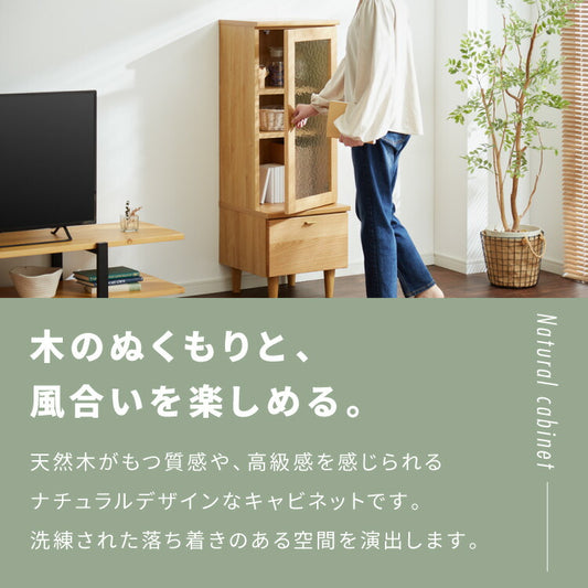 キャビネット 幅40cm サイドボード 天然木 ガラス扉 リビングボード 収納家具 本棚 サイドチェスト オーク ウォールナット 木製 リビング ダイニング(代引不可)