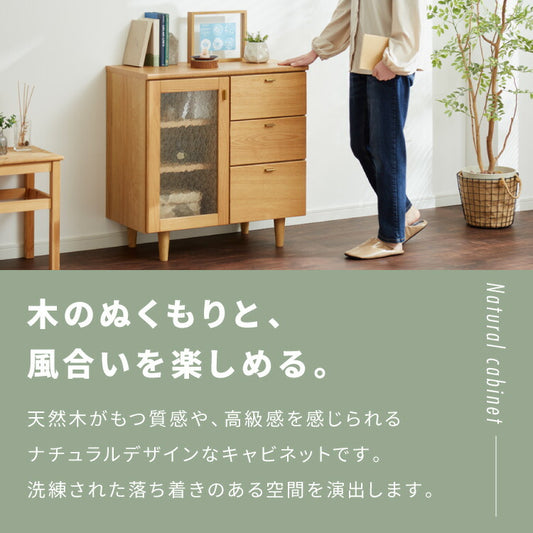 キャビネット 幅74cm サイドボード 天然木 脚付き ガラス扉 引き出し リビングボード 収納家具 サイドチェスト オーク ウォールナット 木製 リビング ダイニング(代引不可)