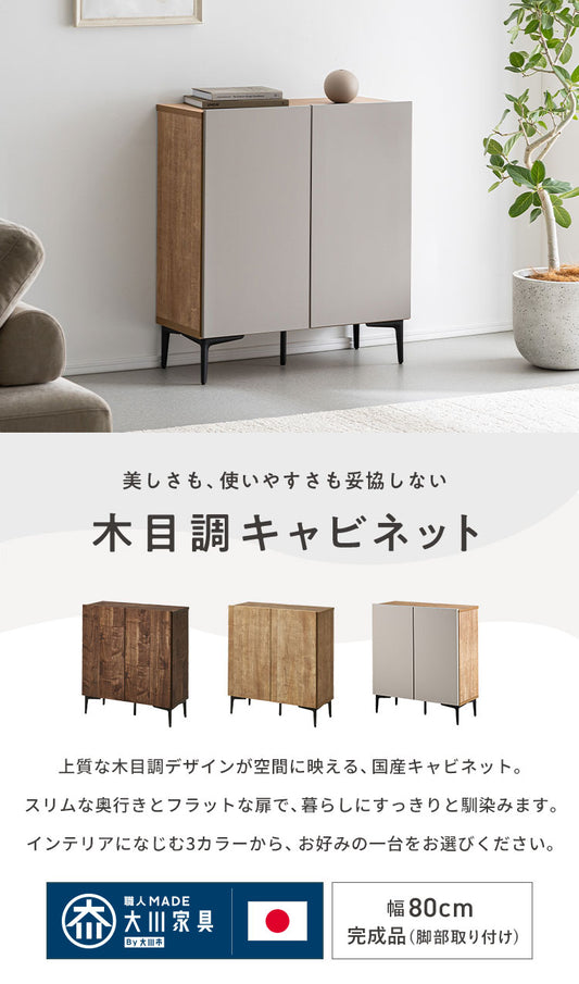 キャビネット 幅80 脚付き 引き出しタイプ フィスバ サイドボード リビングボード リビング収納 おしゃれ 北欧 ヴィンテージ 木目 木製 完成品 大川家具 大容量 本棚 書棚 リビング 収納 扉付き(代引不可)