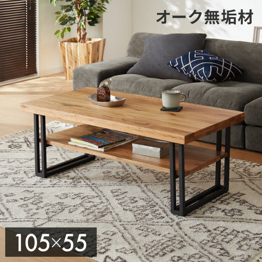 テーブル ローテーブル オーク 幅105 棚付き センターテーブル リビングテーブル カフェ 北欧 西海岸 木製 天然木突板 カフェテーブル おしゃれ(代引不可)