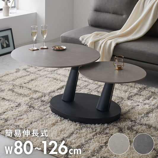 セラミック センターテーブル 幅80~幅126 ローテーブル ラウンドテーブル 円形 伸縮 モダン セラミックテーブル 耐水 耐熱 白 艶消し 傷がつきにくい マット調 おしゃれ グレー(代引不可)