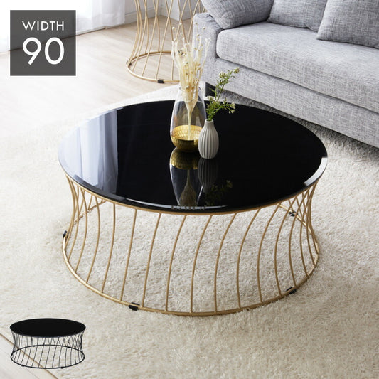 センターテーブル ガラス テーブル 幅90 ローテーブル ラウンドテーブル 円形 おしゃれ ブラック ゴールド コーヒーテーブル モダン ローテーブル リビング ダイニング ベッドルーム(代引不可)