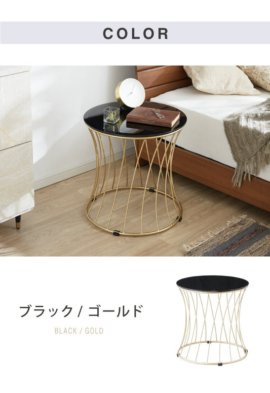センターテーブル ガラス テーブル 幅50 サイドテーブル ラウンドテーブル 円形 おしゃれ ブラック ゴールド コーヒーテーブル モダン ローテーブル リビング ダイニング ベッドルーム(代引不可)