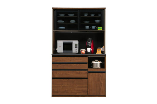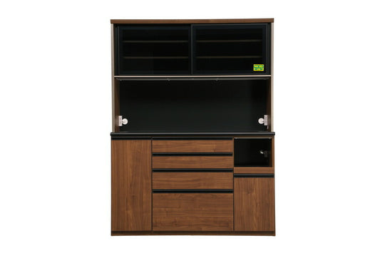 食器棚 キッチンボード 幅120 奥行48 高さ198 完成品 国産 モイス加工 レンジ台 レンジボード 大容量 ソフトクローズ キッチン 収納 木目 フルオープンレール ブラック ウォールナット(代引不可)