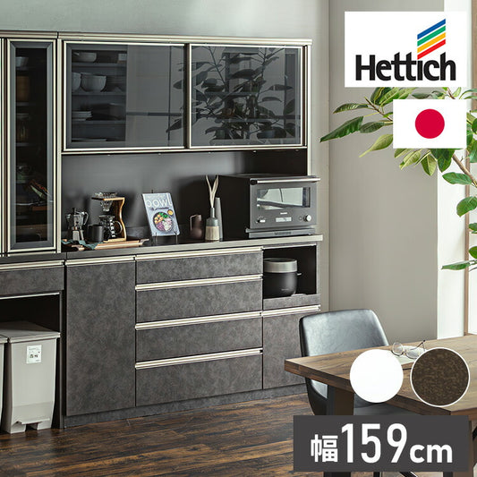 食器棚 キッチンボード 幅150 奥行48 高さ198 完成品 国産 モイス加工 レンジ台 レンジボード 大容量 ソフトクローズ キッチン 収納 木目 フルオープンレール ブラック ウォールナット(代引不可)