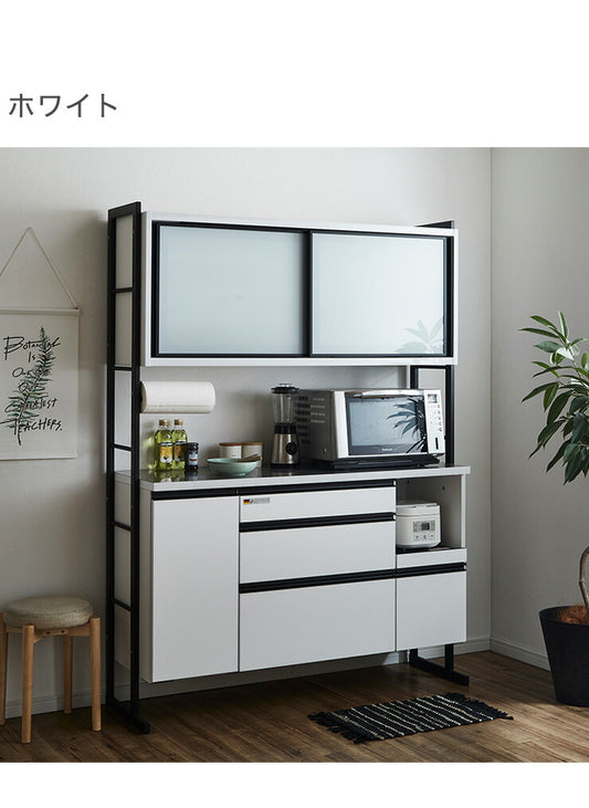 食器棚 完成品 引き戸 幅160cm 高さ200cm 開梱設置無料 ガラス スライド扉 コンセント付き キッチン シンプル キッチン収納 収納 キッチンボード レンジ台 飛散防止フィルム ホワイト ブラック (代引不可)