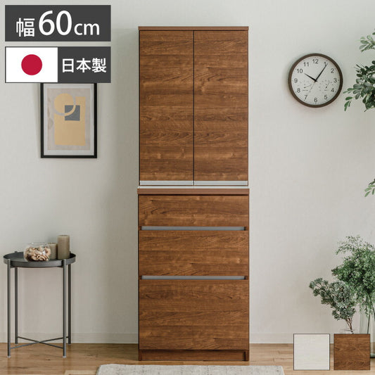 食器棚 キッチンボード 幅60 ハイタイプ 国産 完成品 大川家具 キッチン 収納 ブラウン ホワイト 木目 白 防汚加工 フルオープンレール 日本製 北欧(代引不可)