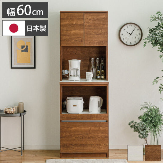 食器棚 レンジ台 幅60 ハイタイプ 国産 完成品 大川家具 キッチン 収納 ブラウン ホワイト 木目 白 防汚加工 フルオープンレール 日本製 北欧(代引不可)