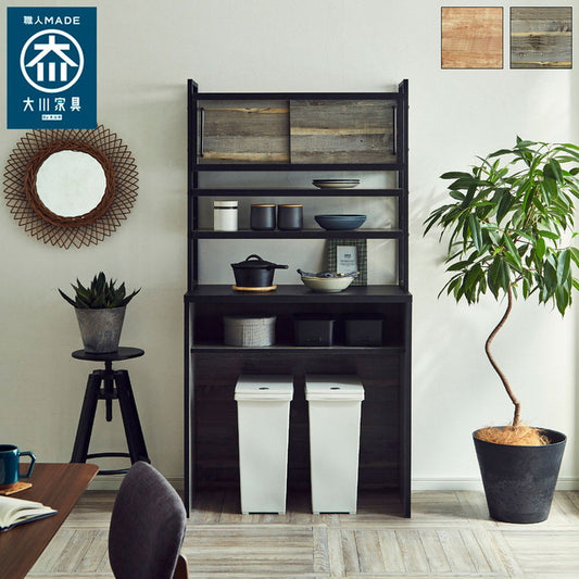 日本製 食器棚 レンジ台 幅90 ゴミ箱 収納 ごみ箱上ラック 国産 大川家具 キッチンボード 引戸 キッチンラック レンジラック 収納棚 キッチン収納 ゴミ箱ラック おしゃれ(代引不可)
