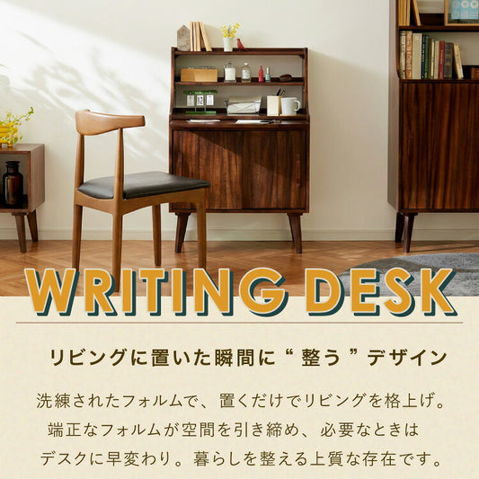 ライティングデスク 幅80cm 北欧 ヴィンテージ 天然木 マホガニー 完成品 勉強机 学習机 書斎 デスク 収納家具 おしゃれ モダン ブラウン 木製 スライド天板 高級感 リモートワーク 在宅(代引不可)