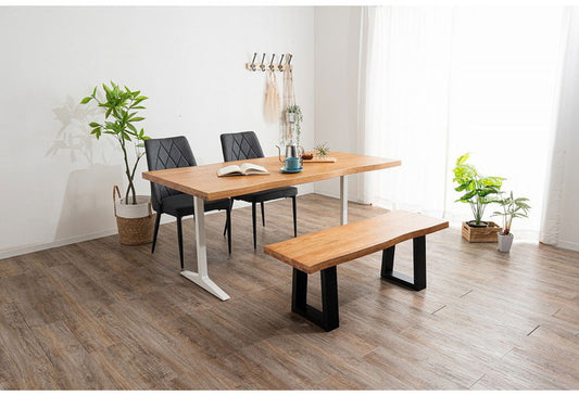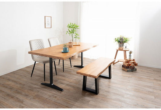 ダイニングセット 4点セットA T字脚テーブル ベンチ チェア2脚 木製 スチール オーク 重厚感 厚天板 耐久性 おしゃれ 耳付き シンプル ナチュラル 自然 温かみ 編み目 リビング ダイニング 食卓 椅子(代引不可)