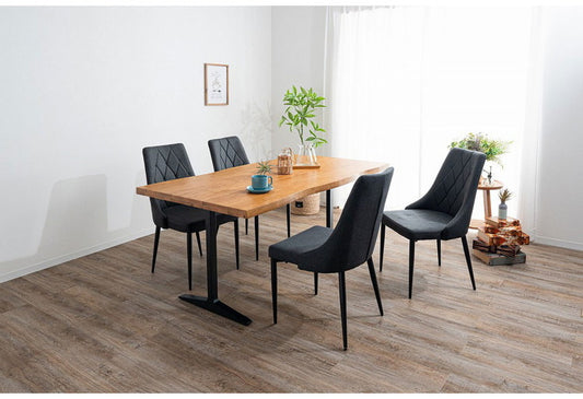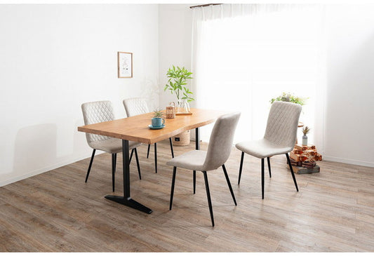 ダイニングセット 5点セットB T字脚テーブル チェア4脚 木製 スチール オーク 重厚感 厚い 耐久性 おしゃれ 耳付き シンプル ナチュラル 自然 温かみ ステッチ リビング ダイニング 食卓 椅子(代引不可)