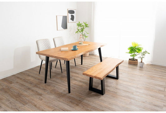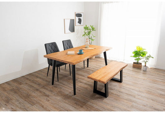 ダイニングセット 4点セットC テーブル ベンチ チェア2脚 木製 スチール オーク スクエア/4本脚 厚い 耐久性 おしゃれ 耳付き シンプル ナチュラル 温かみ 編み目 リビング ダイニング 食卓 椅子(代引不可)