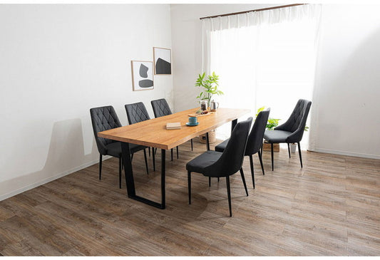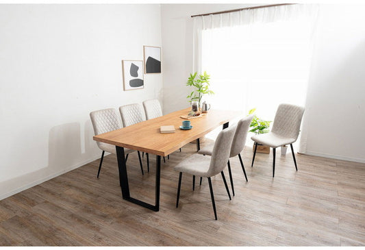 ダイニングセット 7点セットB T字脚テーブル(大) チェア6脚 木製 スチール オーク 厚い 耐久性 おしゃれ 耳付き シンプル ナチュラル 温かみ ステッチ リビング ダイニングテーブル 食卓 椅子(代引不可)