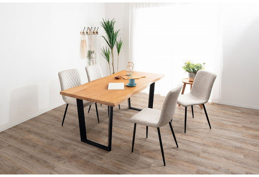 ダイニングセット 5点セットD スクエア/4本脚テーブル チェア4脚 木製 スチール オーク 重厚感 厚い 耐久性 おしゃれ 耳付き シンプル ナチュラル 温かみ ステッチ リビング ダイニング 食卓 椅子(代引不可)