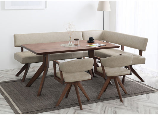 ダイニング 5点セット 180cmテーブル 180cmチェア 160cmカウチ 回転チェア2脚 リビング ダイニングテーブル ダイニングセット チェア 長椅子 新生活(代引不可)