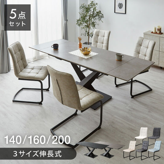 セラミック 伸長式ダイニングテーブルセット 幅160~200 伸縮 ダイニング5点セット 4人掛け 伸縮テーブル モダン 伸長式 ダイニング 耐水 耐熱 白 艶消し 傷がつきにくい おしゃれ(代引不可)