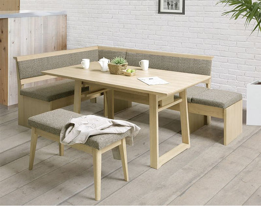 ダイニングセット 4人掛け ベンチ ダイニングテーブルセット ロータイプ 低め 幅160 高さ65.5 広々座面 ナチュラル ファブリック ビーチ突板 木製 おしゃれ 北欧(代引不可)