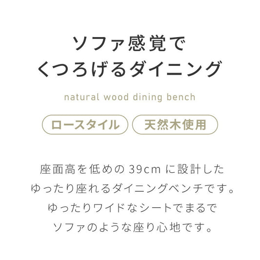 座面高39cm ゆったりダイニングベンチ 幅110 ベンチ ロータイプ 天然木 ファブリック ダイニング ベンチ 背もたれ 2人掛けベンチ 椅子 ダイニングチェア 食卓椅子 食卓チェア ナチュラル