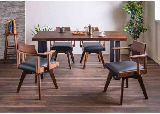 回転チェア ダイニングチェア 単品 大川家具 おしゃれ 椅子 木製 ウォールナット オーク無垢 PVCレザー張地 肘掛け 背もたれ リビング ダイニング いす イス 回転椅子 食卓 リモートワーク 在宅勤務(代引不可)