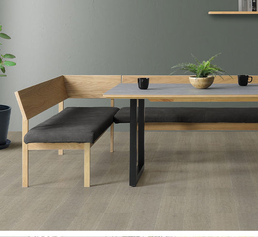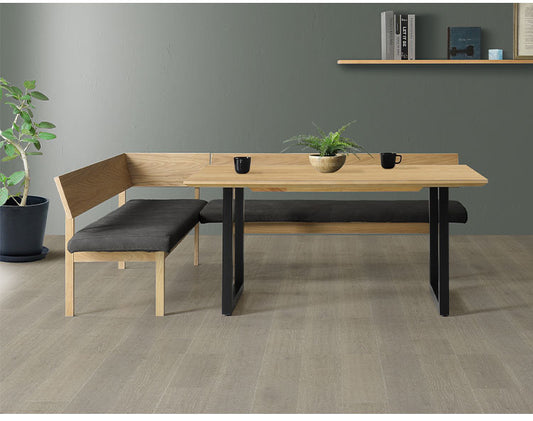 ダイニングカウチ 幅160cm 木脚 L字型 角あり 座面高43cm 2人掛け オーク ファブリック 背もたれ付き シンプル ヴィンテージ風 おしゃれ チェア 椅子 リビング ダイニング(代引不可)