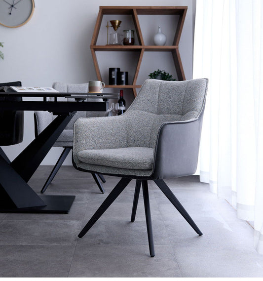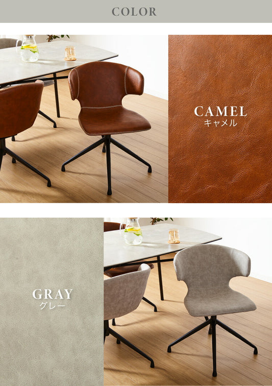 2脚セット 回転 ダイニングチェア 360度 回転チェア 回転椅子 PUレザー スチール脚 椅子 イス 回転式 ステッチ デスクチェア アーマー ラウンドチェア おしゃれ(代引不可)