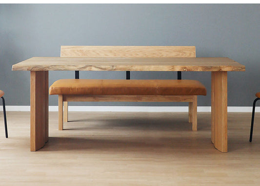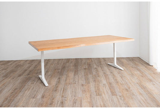 ダイニングテーブル T字脚 200×90cm 木製 スチール オーク 重厚感 厚天板 耐久性 おしゃれ 耳付き シンプル ナチュラル 自然 温かみ リビング ダイニング 食卓(代引不可)
