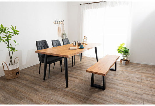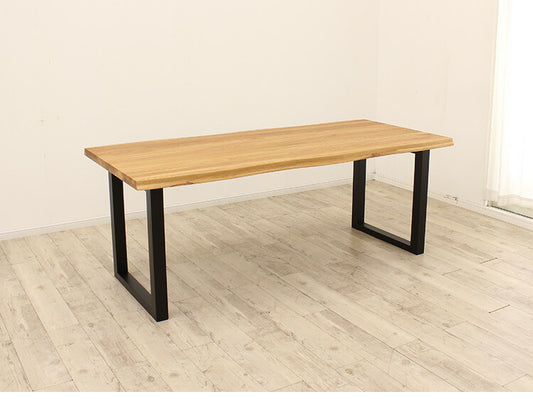 ダイニングテーブル スクエア脚 4本脚 200×90cm 木製 スチール オーク 重厚感 厚天板 耐久性 おしゃれ 耳付き シンプル ナチュラル 自然 温かみ リビング ダイニング 食卓(代引不可)