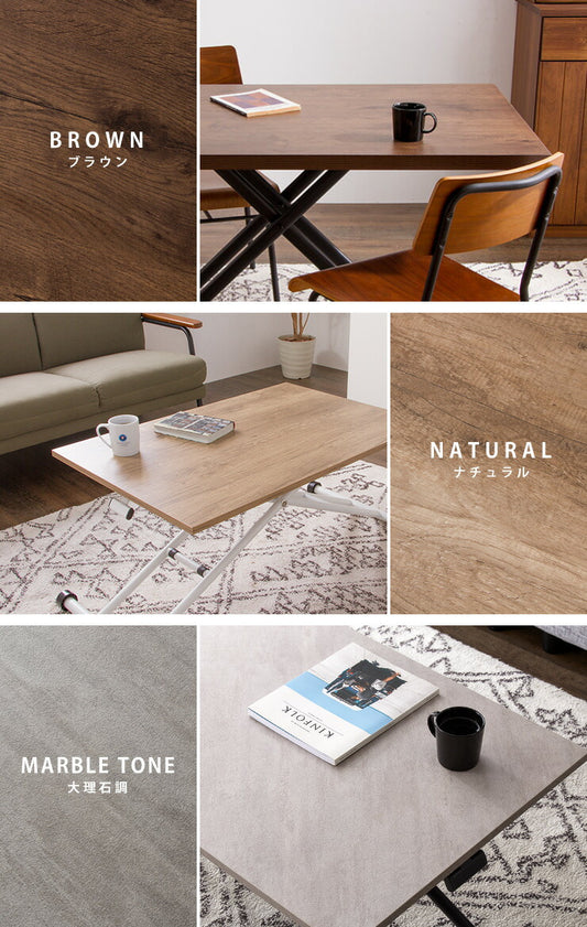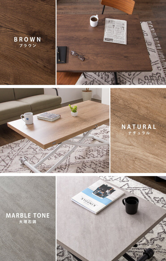 テーブル 昇降式 ガス圧昇降式テーブル 120×80cm ブラウン ナチュラル 大理石調 おしゃれ シンプル 昇降テーブル ダイニングテーブル センターテーブル ローテーブル リビングテーブル デスク 高さ調節