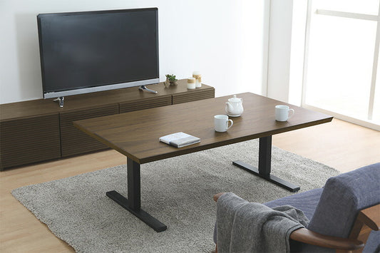 電動昇降式テーブル 幅150cm 高さ調節 テーブル 天板 デスク 机 リビングテーブル ダイニングテーブル ブラウン ローテーブル 上下 伸縮 在宅勤務 リモートワーク(代引不可)