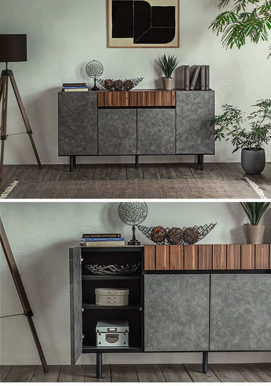 キャビネット 幅120cm チェスト 日本製 大川家具 完成品 ビビ 収納家具 大容量 国産家具 タンス ドア引出 リビングボード サイドボード 本棚 リビング 収納 棚 石目調 モダン(代引不可)