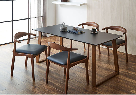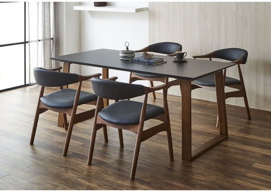 ダイニングテーブルセット 天然木 ダイニング5点セット 無垢集成材 ウォールナット 肘付き ヒジツキ 肘 4人掛け 160×80 スクエア脚 肘付 おしゃれ テーブル チェア 4脚(代引不可)