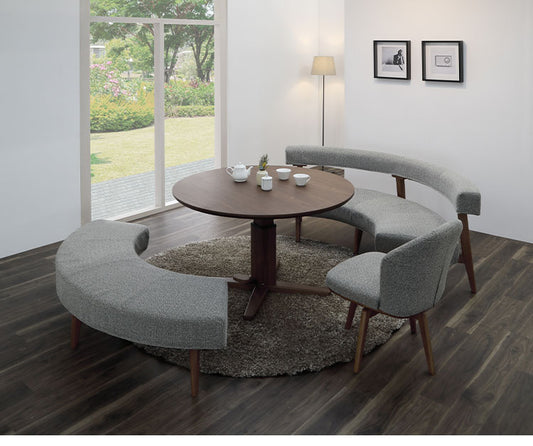 ダイニングセット 4点セット 昇降テーブル 回転チェア ラウンドベンチ ラウンドチェア リビング ダイニング カフェテーブル 円形 丸テーブル おしゃれ 新生活(代引不可)
