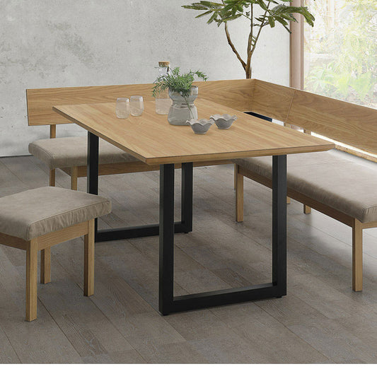 ダイニングテーブル 4人掛け 150×90cm リビングテーブル アイアン脚 脚間調節可能 モダン 北欧 おしゃれ 食卓 リビング ダイニング オーク テーブル(代引不可)