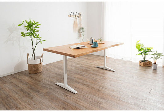 ダイニングテーブル T字脚 200×90cm 木製 スチール オーク 重厚感 厚天板 耐久性 おしゃれ 耳付き シンプル ナチュラル 自然 温かみ リビング ダイニング 食卓(代引不可)