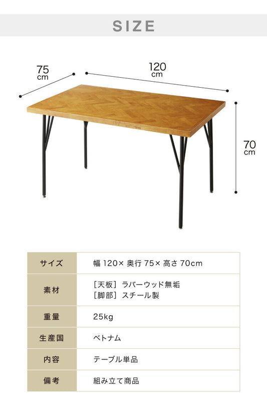 ダイニングテーブル 120 単品 幅120 ヘリンボーン調 ラバーウッド無垢材 天然目 テーブル 西海岸 木製 コンパクト 長方形 食卓テーブル おしゃれ モダン(代引不可)