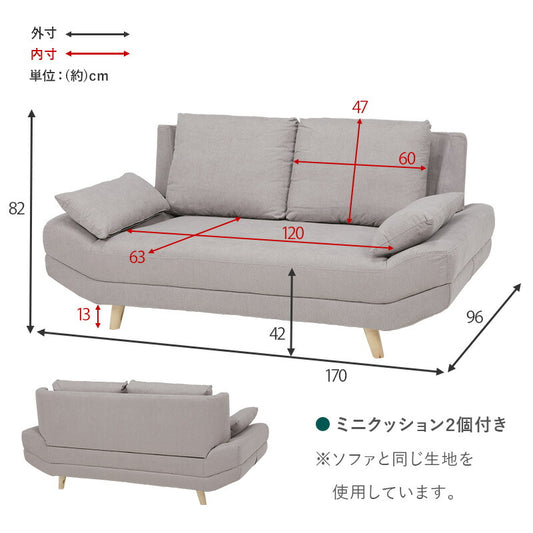 【開梱設置付き】 アームレスソファ ごろ寝ソファ ゆったりワイド座面 クッション2個付き 2人掛け 肘無し 2P 幅170 北欧 おしゃれ 天然木脚 ローソファー ファブリック(代引不可)