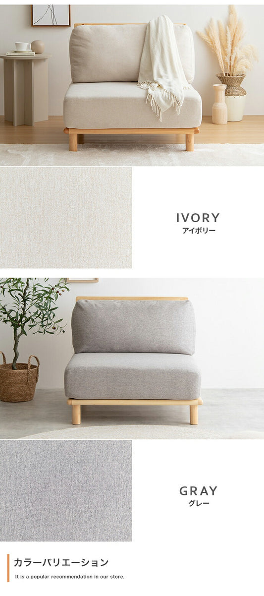 アームレスソファ ゆったり座面 幅75 奥行ワイド 脚付き 1人掛け 肘無し 1P 北欧 おしゃれ 天然木脚 ローソファー ファブリック 1Pソファ(代引不可)