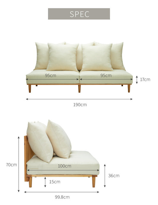 アームレスソファ ごろ寝ソファ ゆったり座面 幅135 奥行ワイド 脚付き 2人掛け 肘無し 2P 北欧 おしゃれ 天然木脚 ローソファー ファブリック 2Pソファ(代引不可)