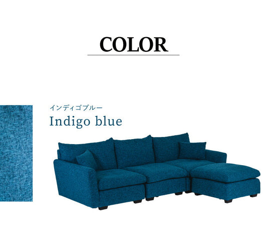 ソファ ソファー カウチソファ 組み換え自由 4人掛け ワイド 4P インディゴ クッション付き ソファセット sofa 四人掛け 北欧 おしゃれ オットマン(代引不可)