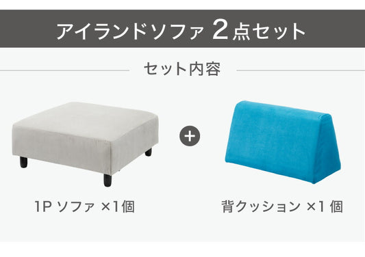 アイランドソファ ソファ 2人掛け 組み換え自由 間仕切り 2P 二人掛け おしゃれ ローソファ ソファーセット 大きい ベロア オットマン グレー ブルー(代引不可)