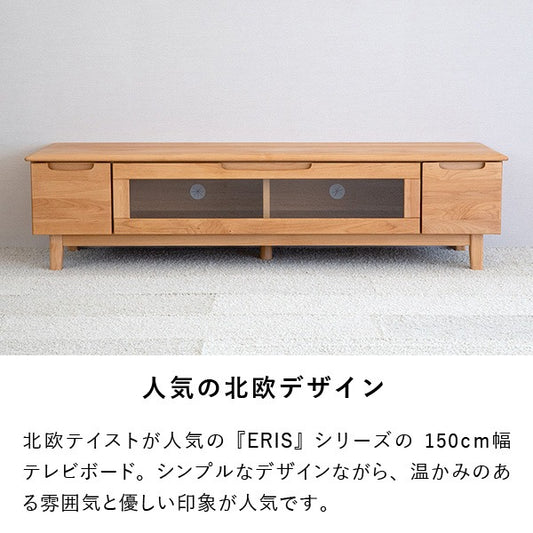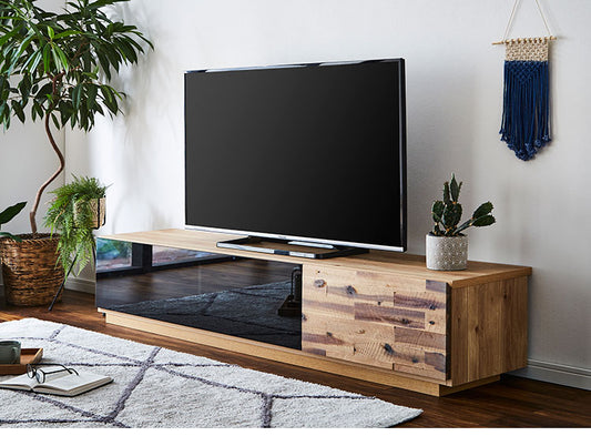 テレビボード 幅150cm ブラックガラス ガラス扉 アカシア無垢材 天然木 日本製 フルオープンレール ナチュラル コード穴付き おしゃれ 北欧 ヴィンテージ 一人暮らし(代引不可)