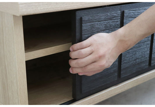 テレビボード 幅180cm ブラックガラス ガラス扉 アカシア無垢材 天然木 日本製 フルオープンレール ナチュラル コード穴付き おしゃれ 北欧 ヴィンテージ 一人暮らし(代引不可)