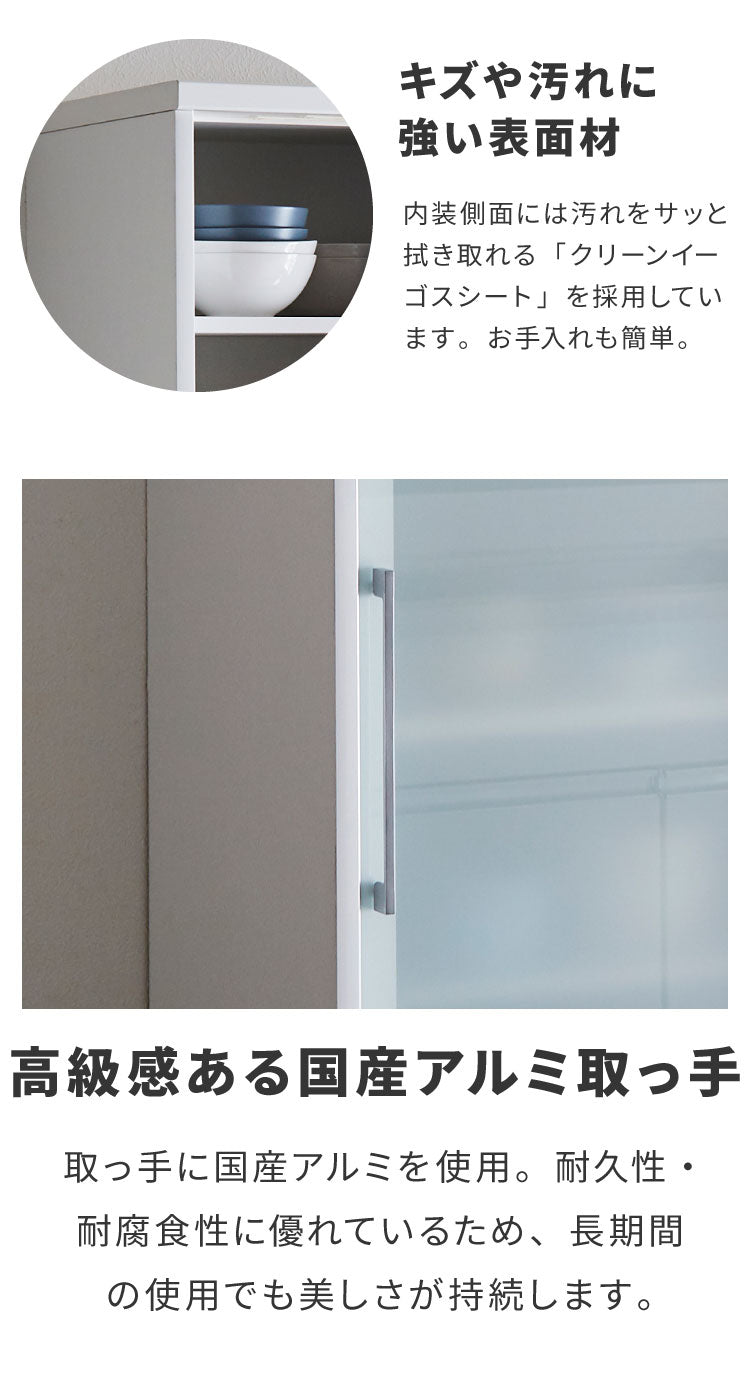 食器棚 完成品 引き戸 幅100cm 【開梱設置付き】 大川家具 日本製 大容量 スリム キッチンボード カップボード キッチン収納 ガラス扉 飛散防止 ミストガラス 汚れに強い クリーンイーゴスシート 耐汚(代引不可)
