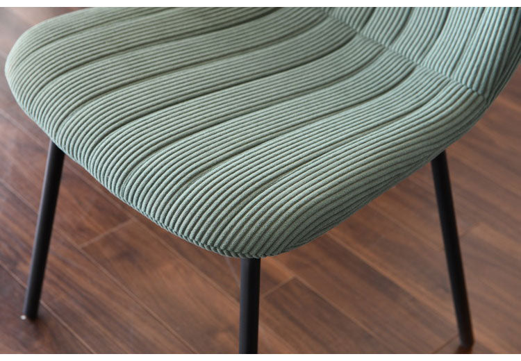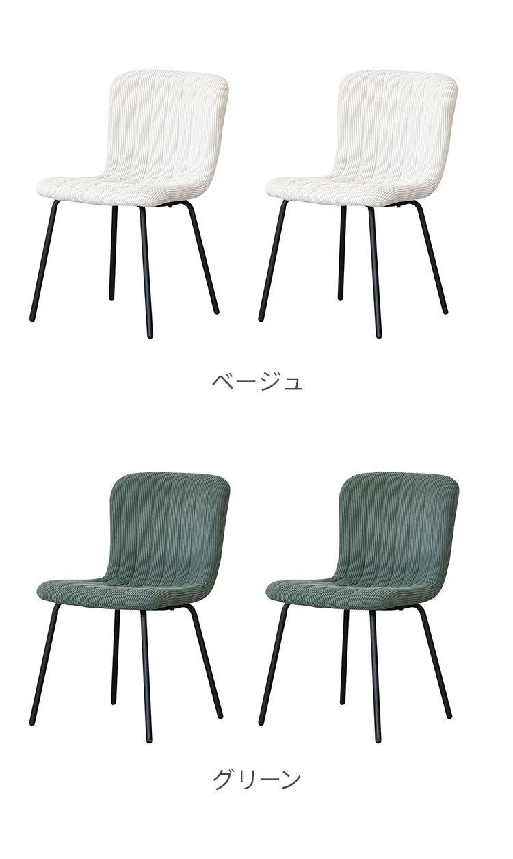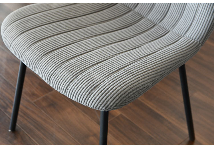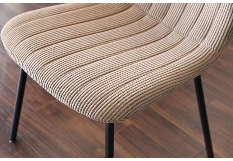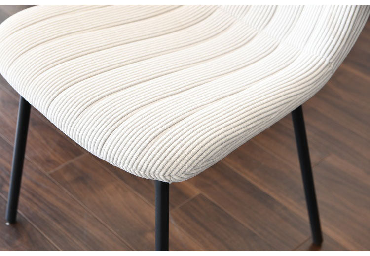 ふっくらとした厚みのある座面と背もたれが、体を優しく包み込むダイニングチェア。柔らかなコーデュロイ調のファブリックが心地よい肌触りを提供し、まるでソファのような快適な座り心地を実現しました。