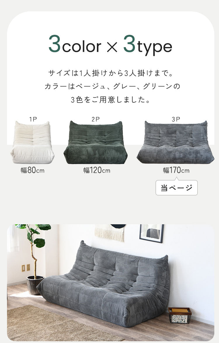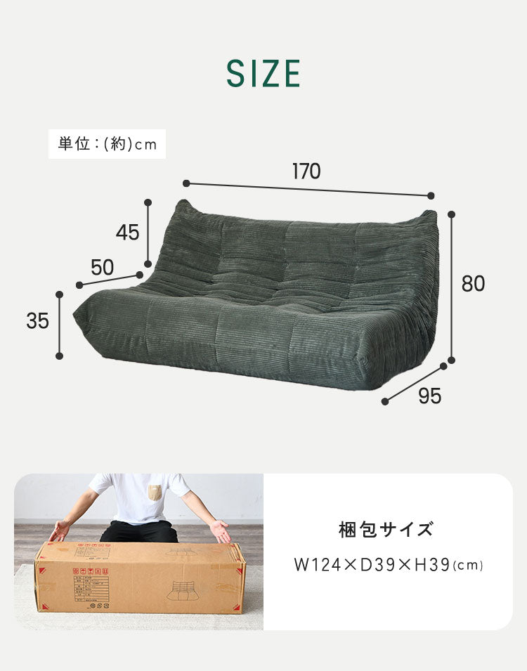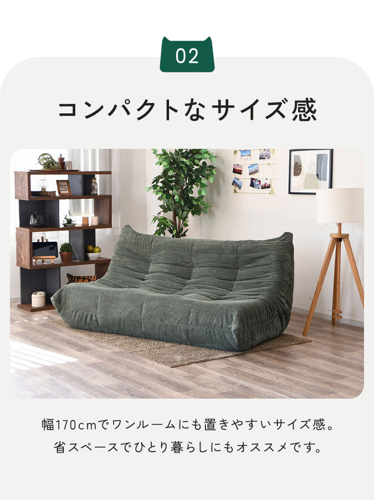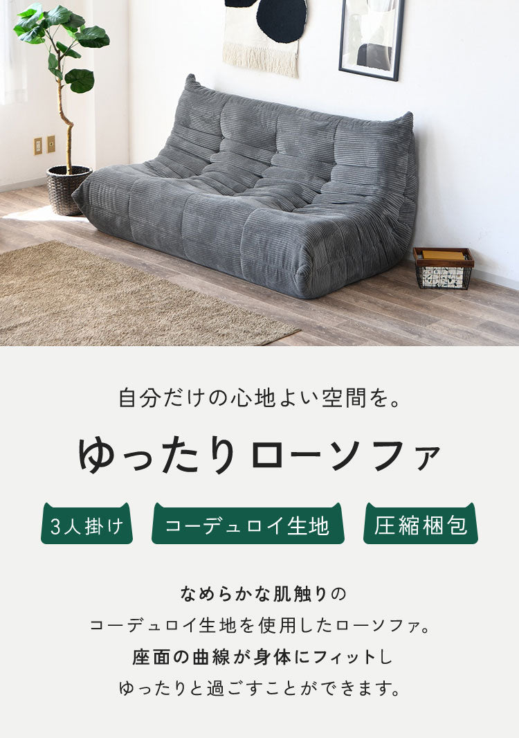ソファ コーデュロイ 3人掛け 幅170 ローソファ 圧縮ソファ フロアソファ ソファー おしゃれ 三人掛け 3P リビング ロータイプ コンパクト ファブリック シンプル 圧縮梱包 sofa パーソナルチェア(代引不可)