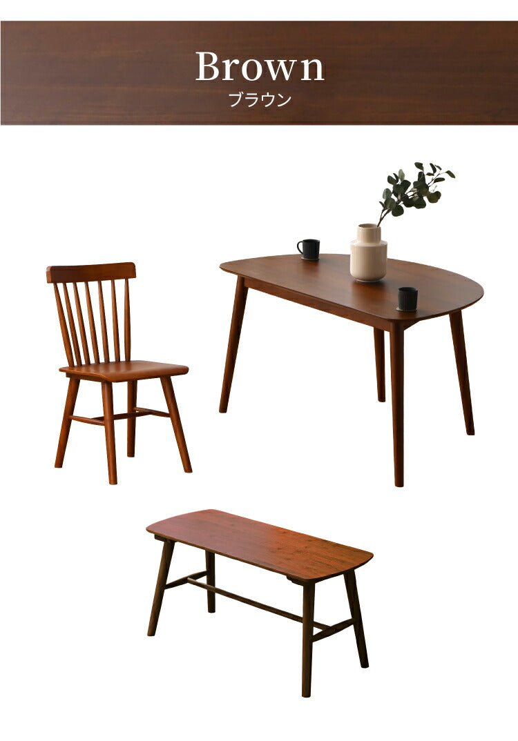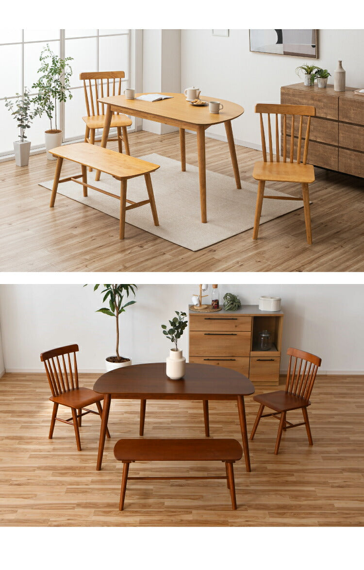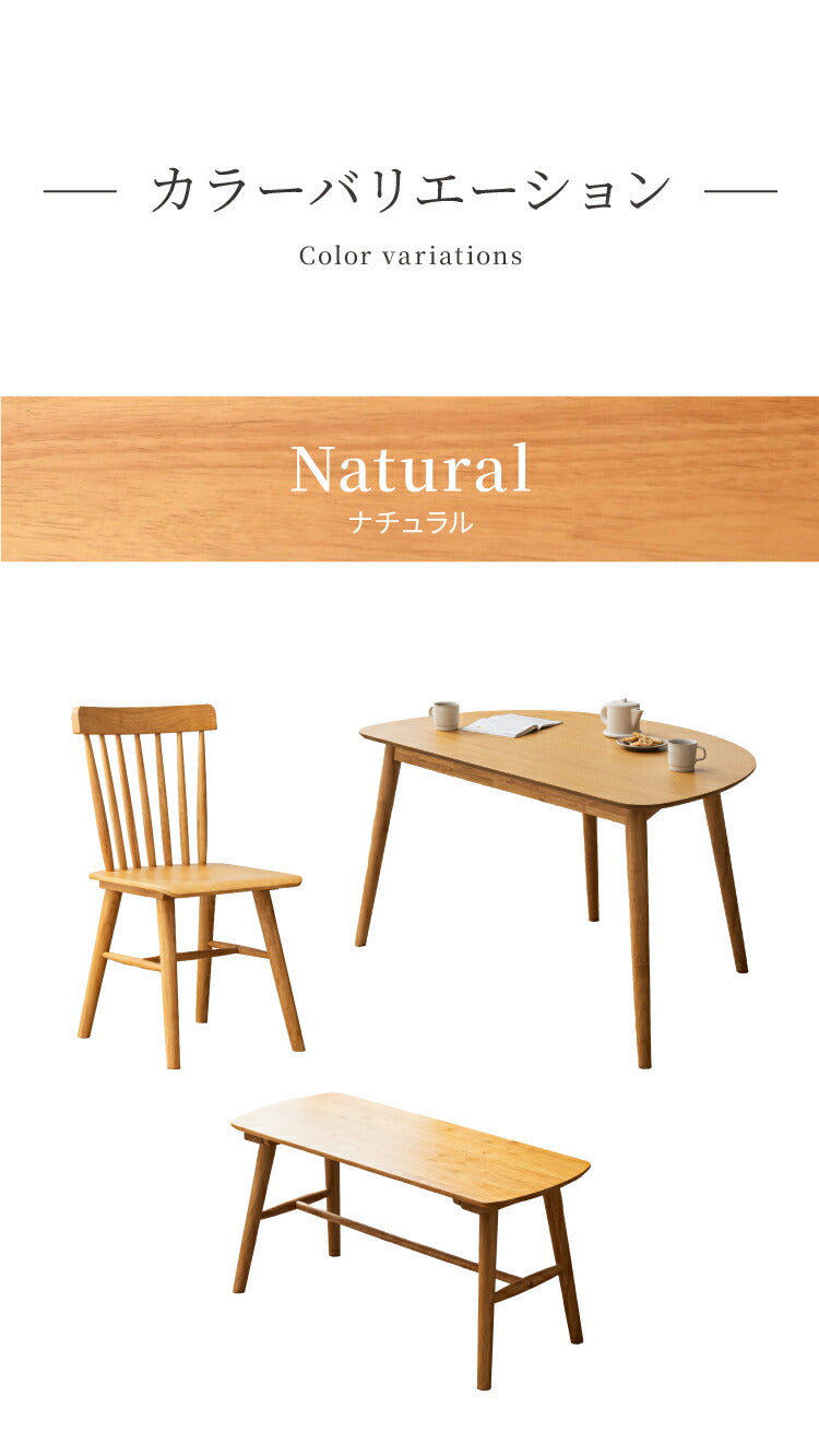 ・ 天然木の質感を愉しむ「オーク突板×無垢材」:テーブル天板には、ナチュラルで力強い木目が特徴のオーク天然木(突板)を使用。チェアとベンチには、耐久性に優れたラバーウッド無垢材を贅沢に採用しました。本物の木のぬくもりが、毎日の食卓を上質なカフェのような空間に変えてくれます。